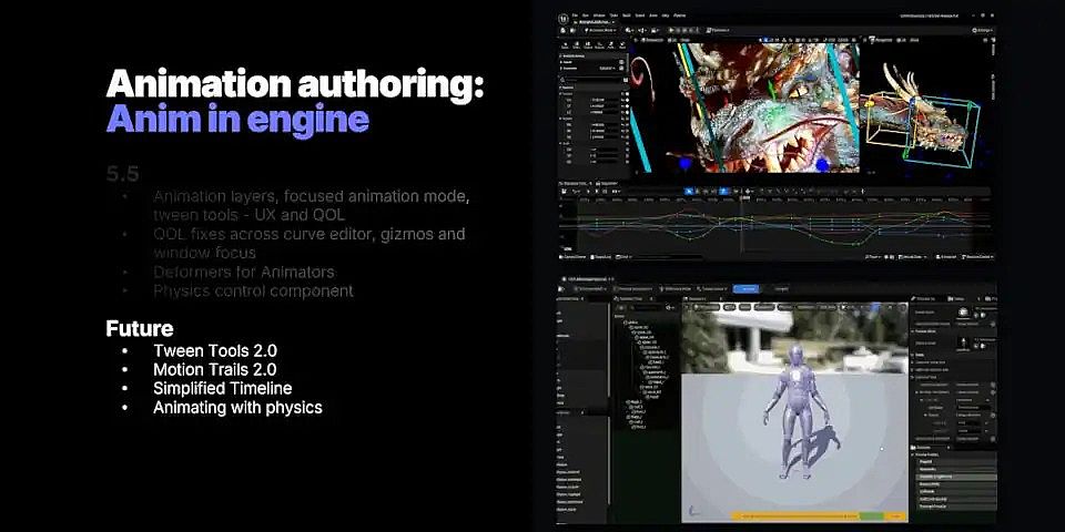 Unreal Engine的引擎內動畫工具的變化將包括簡化的時間軸,以及Tween Tools和Motion Trails系統的新版本。詳細討論的是使用物理進行動畫制作,物理模擬與骨骼動畫并行運行,Brussee將其描述為提供“自由重疊”和次級運動。
