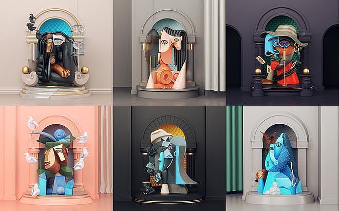 早在2017年,Omar Aqil就首次在Behance上展示了一系列用3D風(fēng)格將畢加索的作品轉(zhuǎn)化成三維模型的作品,并取名為MIMIC系列,一舉成名,引起了熱烈反響。