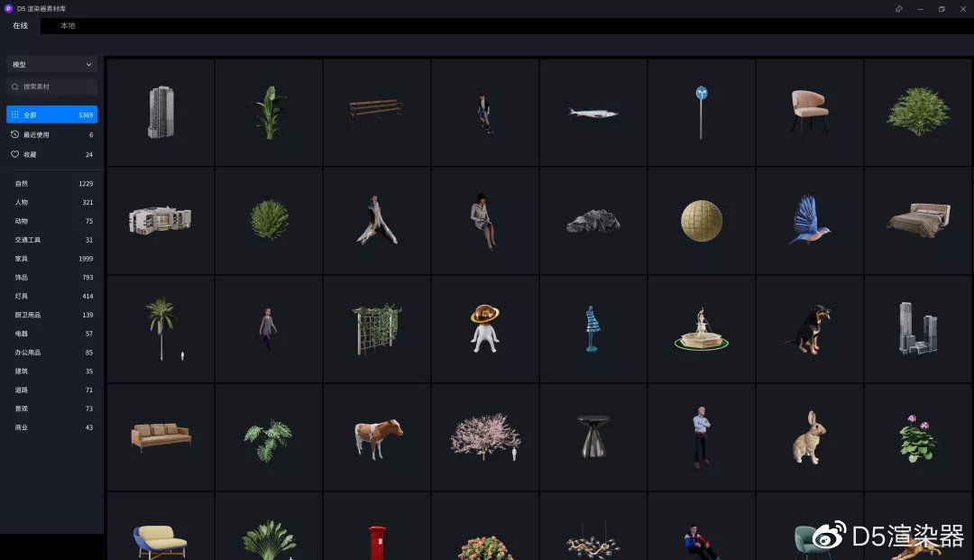 素材庫品類全面更新,【D5 Works云端素材庫】上線,增加近4000個新模型,為你的場景增添多抹生機,每一次互動,都印象深入。