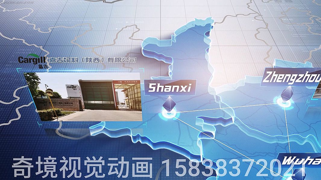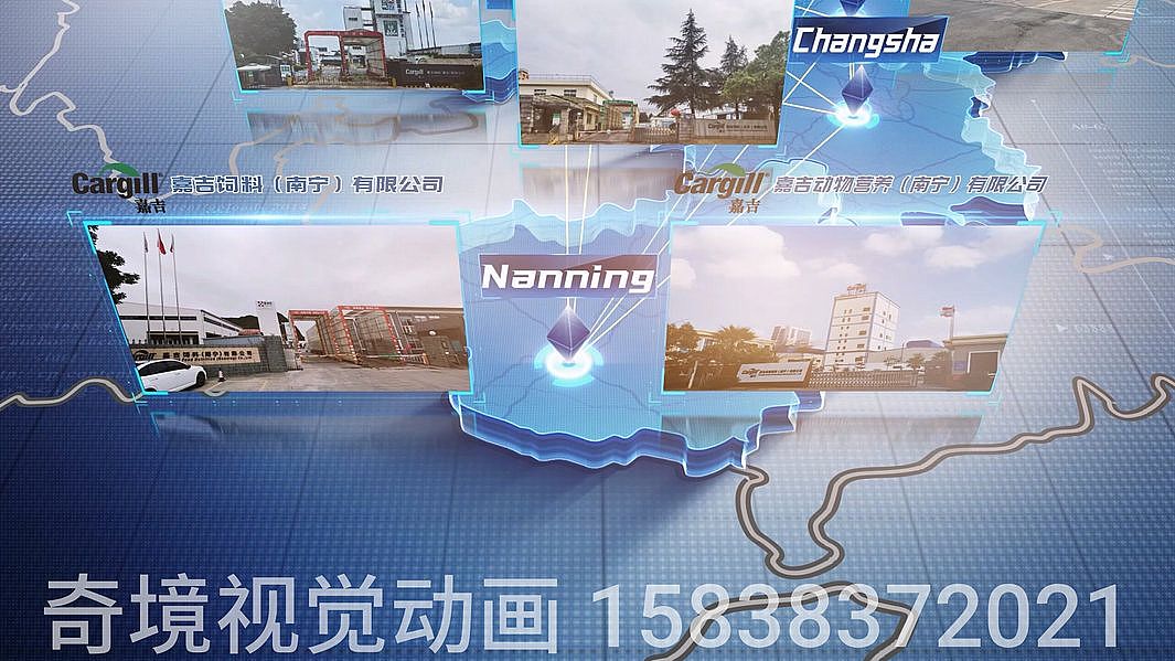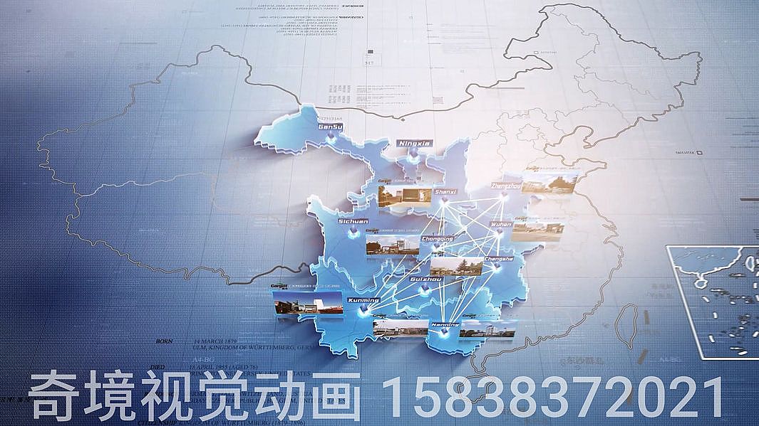 3D立體地圖展示各地分公司組成的營銷網(wǎng)絡(luò),用于企業(yè)年會片頭。